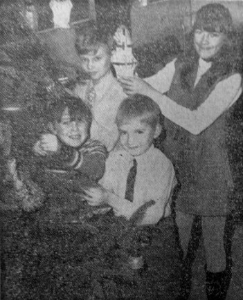Andrew Malyan, Martin Plummer, Alan Wood and Ann Goodwin dress the Christmas tree for the childrens party on Saturday at coraths of Bolton