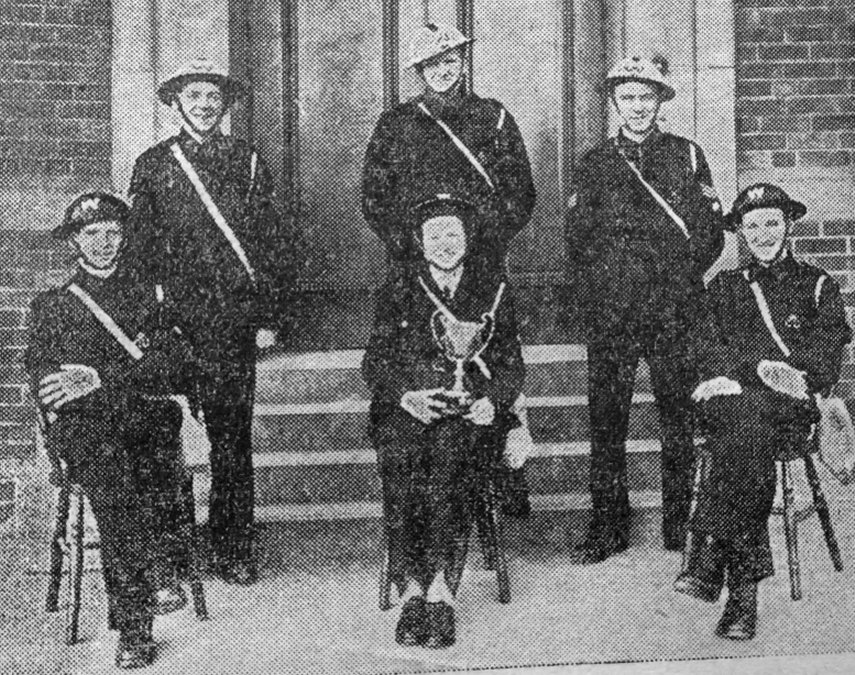 Mexborough No 4 Post (Park Road) team Senior Warden Alfred Hughes (captain), Warden George Carr, Senior Fire Guard Edward Diggles, Warden Irene Beevers, Warden Ernest Johnson, and Warden Frank Case, were adjudged winners,