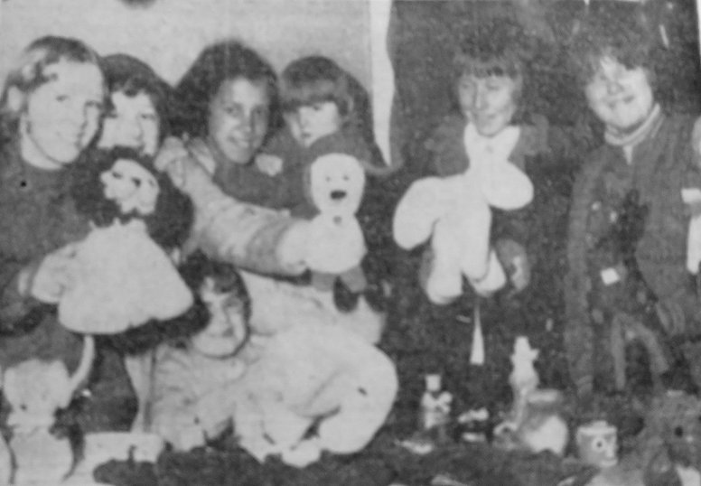 Happy Youngsters help to sell toys at Bolton St. Andrews Christmas Bazaar on Saturday.